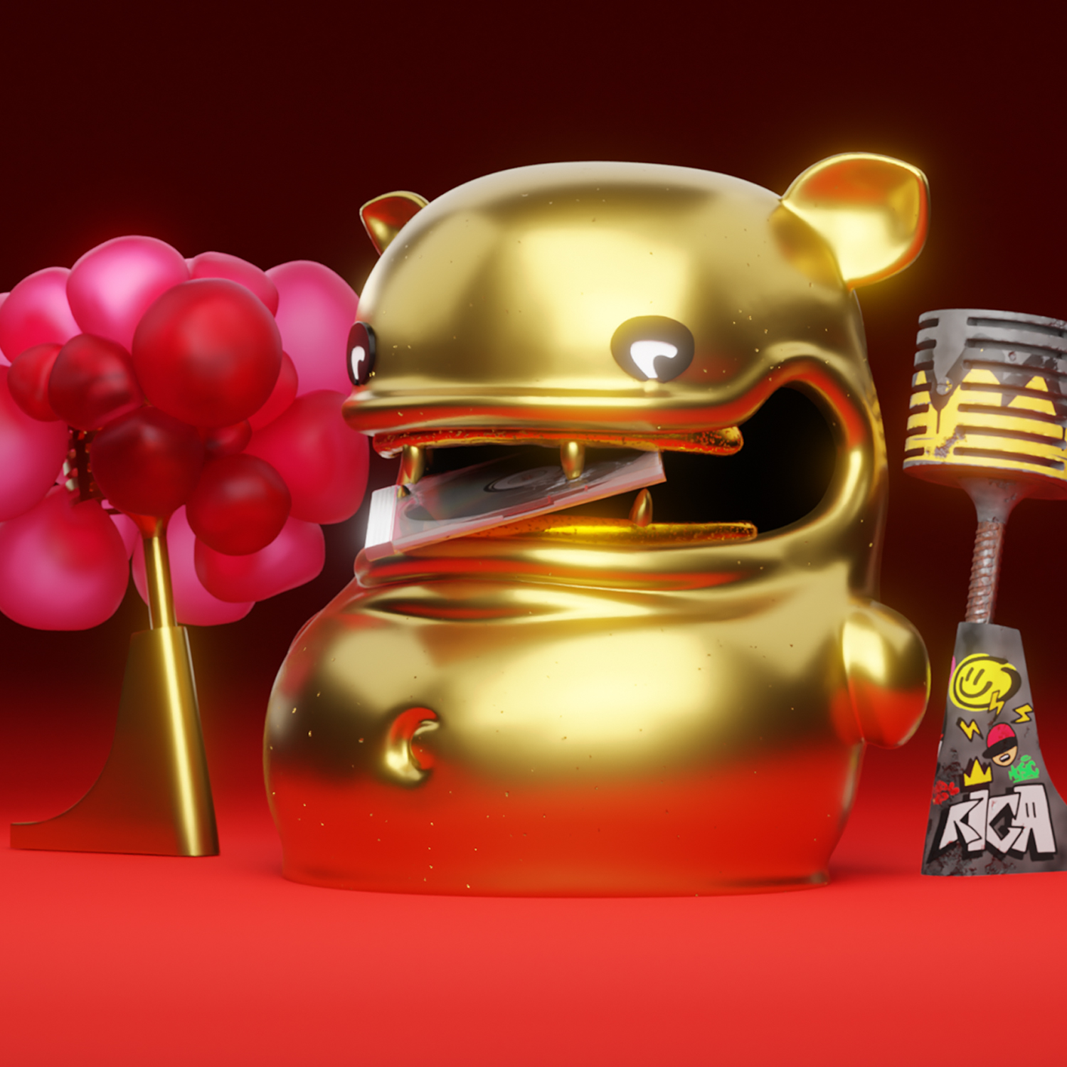But the whole crypto shenanigan did spark new ideas. Grandpa got invited to Dubai Expo 2020 to represent Latvia, talking about NFTs and the oddball concept of KIWIE 1001. After a trip to New York, he came back so inspired by Takashi Murakami that he founded KIWIE STUDIO in Riga - together with a few kids he met on Discord. A space that was part laboratory, part creative sanctuary. Somehow, he even convinced Citadele Bank to launch KIWIE Visa cards, designed using artificial neural networks and Python code. Whatever that means. To celebrate the launch, John completely repainted KIWIE SPACE in collaboration with LG, which ended up being selected as one of LG’s most creative projects . An official from Korea even came in person to see it. As if that wasn’t enough, Grandpa also designed the digital awards for Latvia’s Grammys, the Zelta Mikrofons. Probably unnecessary, but at least the animations looked somewhat cool.
