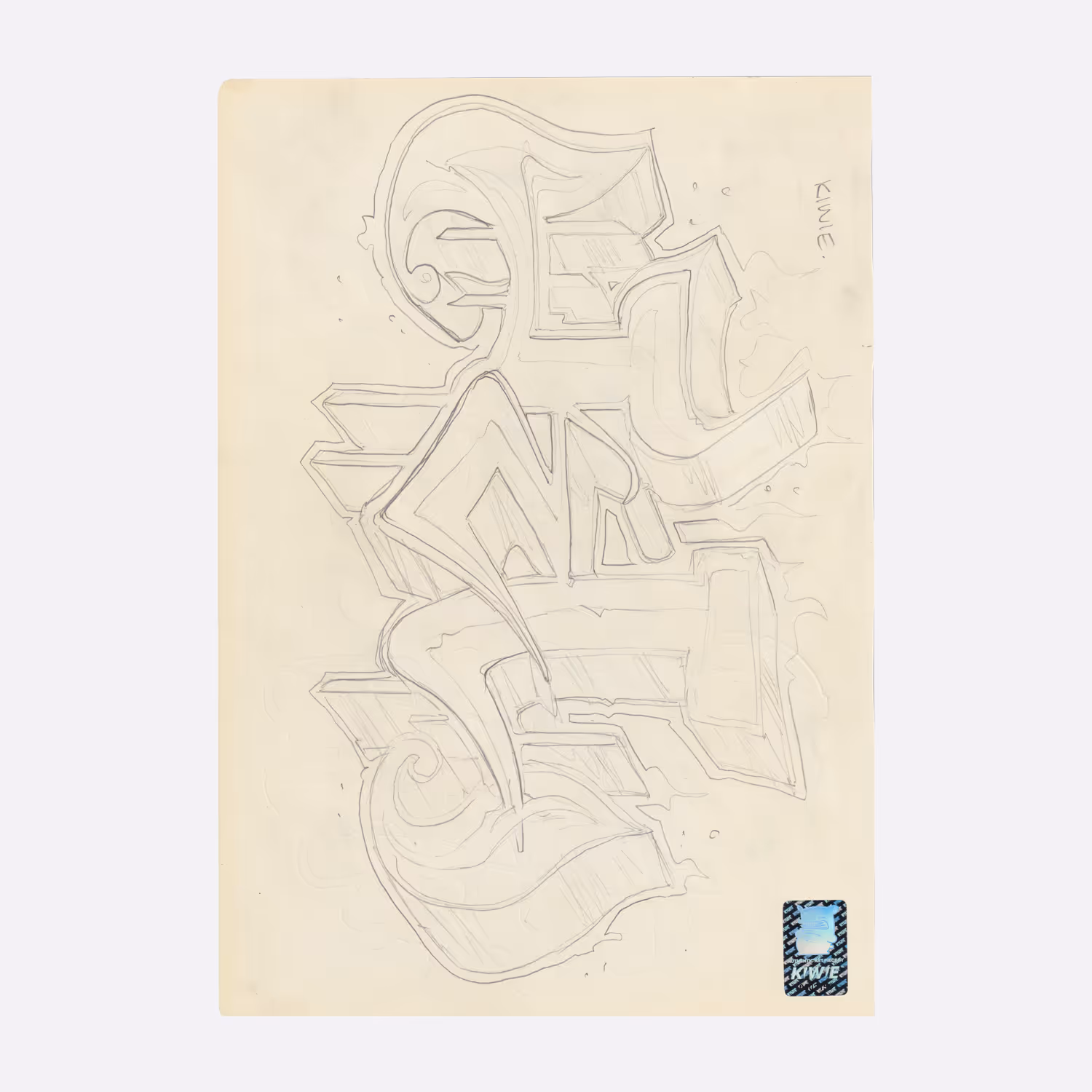 On the front of the sketch, you’ll find Grandpa’s original signature and date. On the reverse, a unique, numbered holographic sticker guarantees the artwork’s authenticity. Each piece comes with a signed, laminated Certificate of Authenticity, detailing the title, dimensions, serial number, and Grandpa’s autograph.Every sketch is a true one-of-a-kind original never to be reproduced or reissued.And because he believes in youthful maximalism, 50% of all proceeds go directly to the KIWIE FNDN, helping support the next generation of young artists.[Learn more about the Foundation here.]