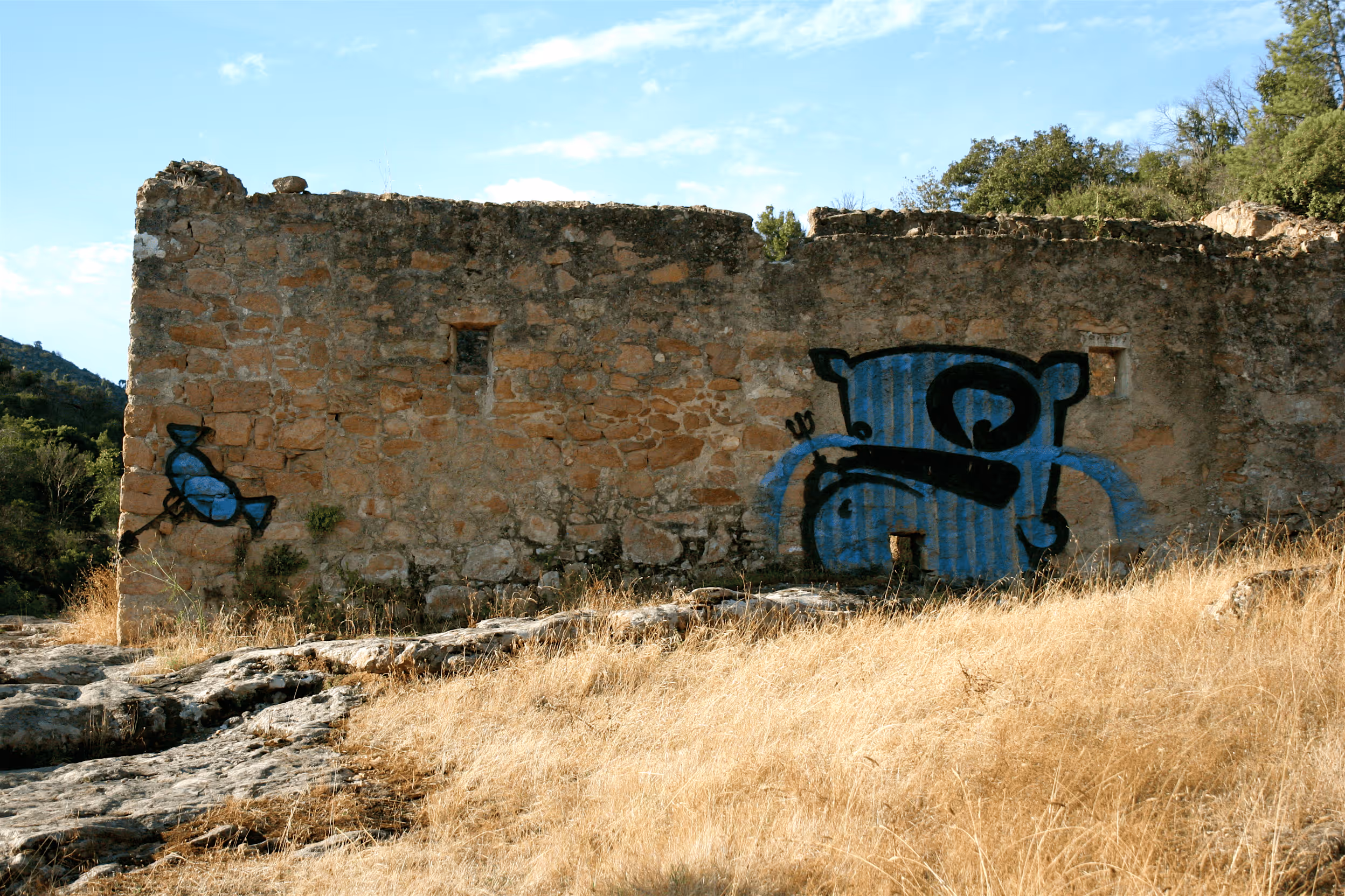 Grandpa said, he painted this once on a trail somewhere in the mountains near Frejus in France. Nobody knows why.