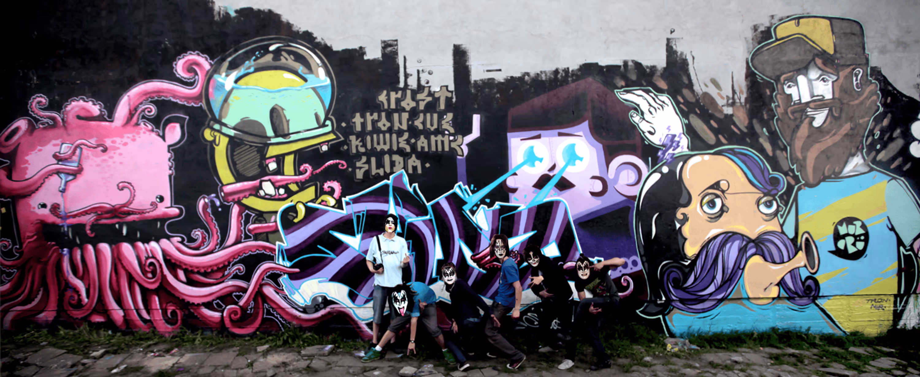 Grandpa and all the kids painted a wall in Bialystok, Poland at "East Side Street Art" graffiti festival.
