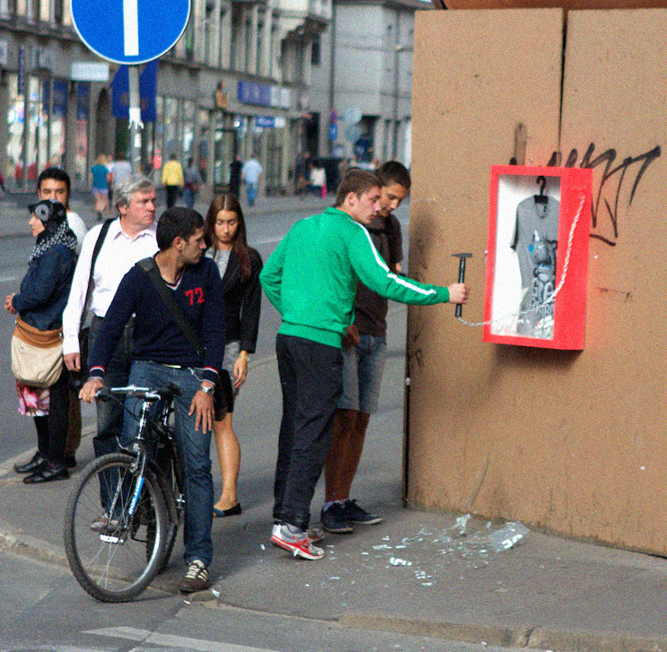 It was time for the mighty UK to meet John. He went over, painted some walls with his imaginary friend SAKI, and when he got back, he received a message from the owner of a boat docked in Wales. Apparently, the boss-man had seen Grandpa’s monsters in the UK and wanted something similar on his ship. It turned out to be a legendary cruise liner fun-ship "Duke on Lancaster". So Grandpa spray-painted both sides of the liner. As it turned out, the ship had been built by the same folks who built the Titanic. Grandpa even snuck inside, despite it being strictly prohibited, but John is very bad at reading any signs. So by entering the ship he was wondering where everybody had gone as the dishes were still sitting on the tables. After that, he visited Berlin again, and the trip inspired him to put together a new exhibition, “Steal Me!” - where people could literally steal his artworks. Yet another great business plan. When visitors entered the exhibition room, they found it empty. The entire show had been scattered throughout the streets. Guests were given maps, and anyone who reached the artworks first could take them. Of course, all the guys who came with bikes grabbed everything before anyone else even got a chance, so most people just wandered around searching for non-existent pieces. It was probably the first - and only - exhibition in Latvia where every artwork was stolen in less than an hour.
