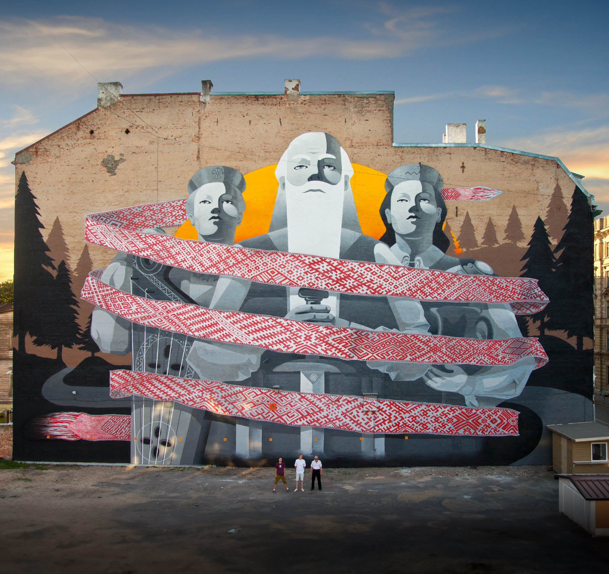 Grandpa painted "GRAY RAINBOW" - Latvia’s first large scale spray-painted mural, measuring 250 square meters and towering 22 meters high. To make things even more complex, Grandpa’s mural was part of the Gray Rainbow exhibition he managed by himself, which took place simultaneously in five countries: Latvia, Germany, Estonia, Poland, and France. Obviously another cover-up, just to travel more. By the way - thanks to this artwork, the Latvian government changed the rules for documentation and permits required to paint large-scale art. Before that, anyone could pretty much do whatever they pleased on their building’s walls, as long as it didn’t face the street. Now… not so much. And now you know why. But of course, that wasn’t enough. That same year, Grandpa launched a scavenger hunt called “BREAK GLASS”, where people had to track down boxes with T-shirts inside - break the glass, and the shirt was yours. Another great business idea by John. To round out the year, he went to Estonia to participate in “BALTIC SESSION 2013”, painting a collaborative piece at Telliskivi with TAD CREW, Zmog, Truba, and Trun.