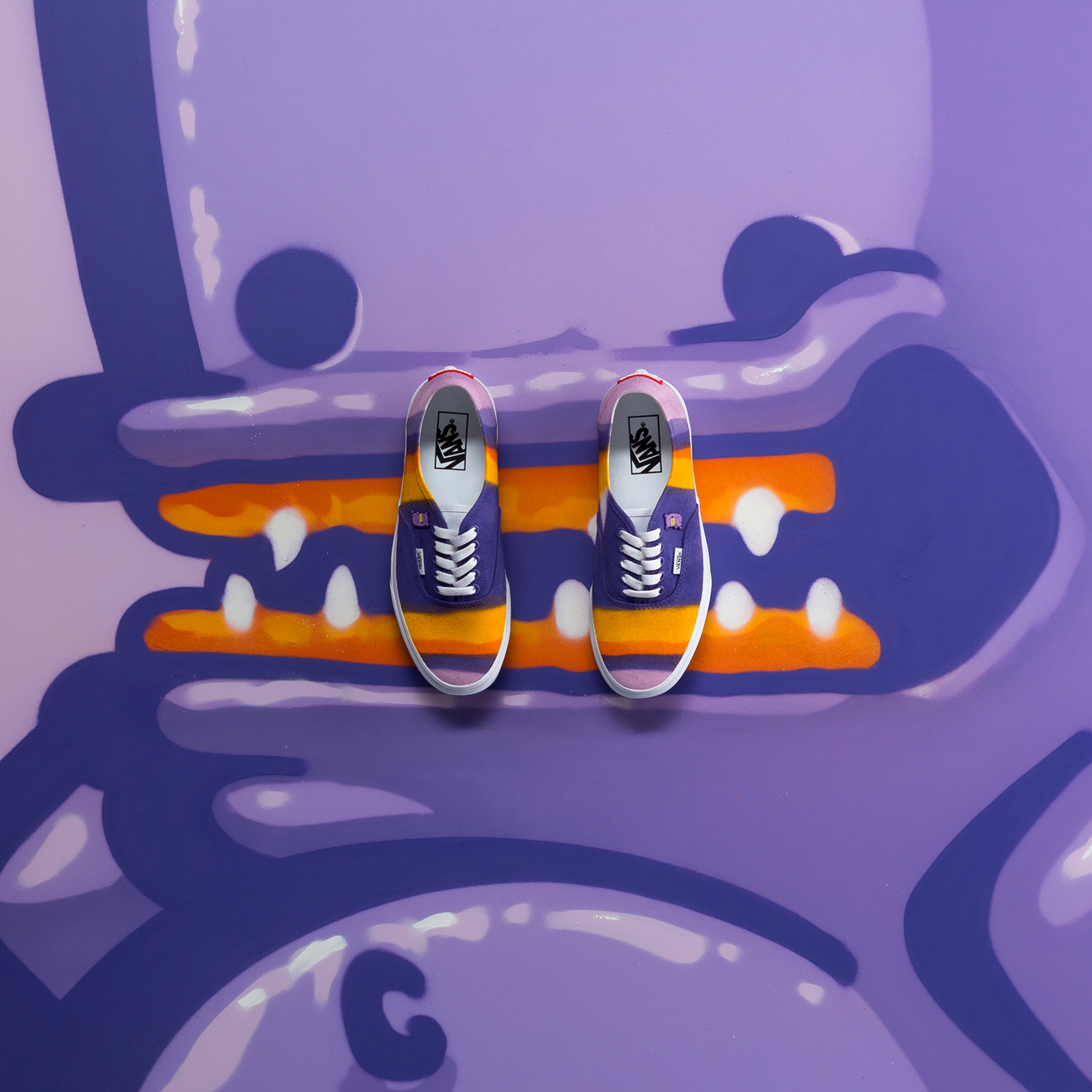 After the intense celebrations, John slipped into chill mode to stabilize his blood pressure and calm the hell down. Fresh out of rehab, he went to France with his apprentice VOUR to paint a mural in Grand Champ. The whole town showed up to watch John at work. I even found a video of John randomly milking a cow and flipping pancakes for breakfast at some unknown ladies house. Around the same time, he got a call from VANS Shoes Europe asking for a collaboration. Grandpa agreed, and his idea was to nail the shoes straight onto the canvas and paint all over them. After the collection launch, he went back to Cyprus. At this point, I suspect they’ve probably given him a resident’s passport… and maybe even another family.