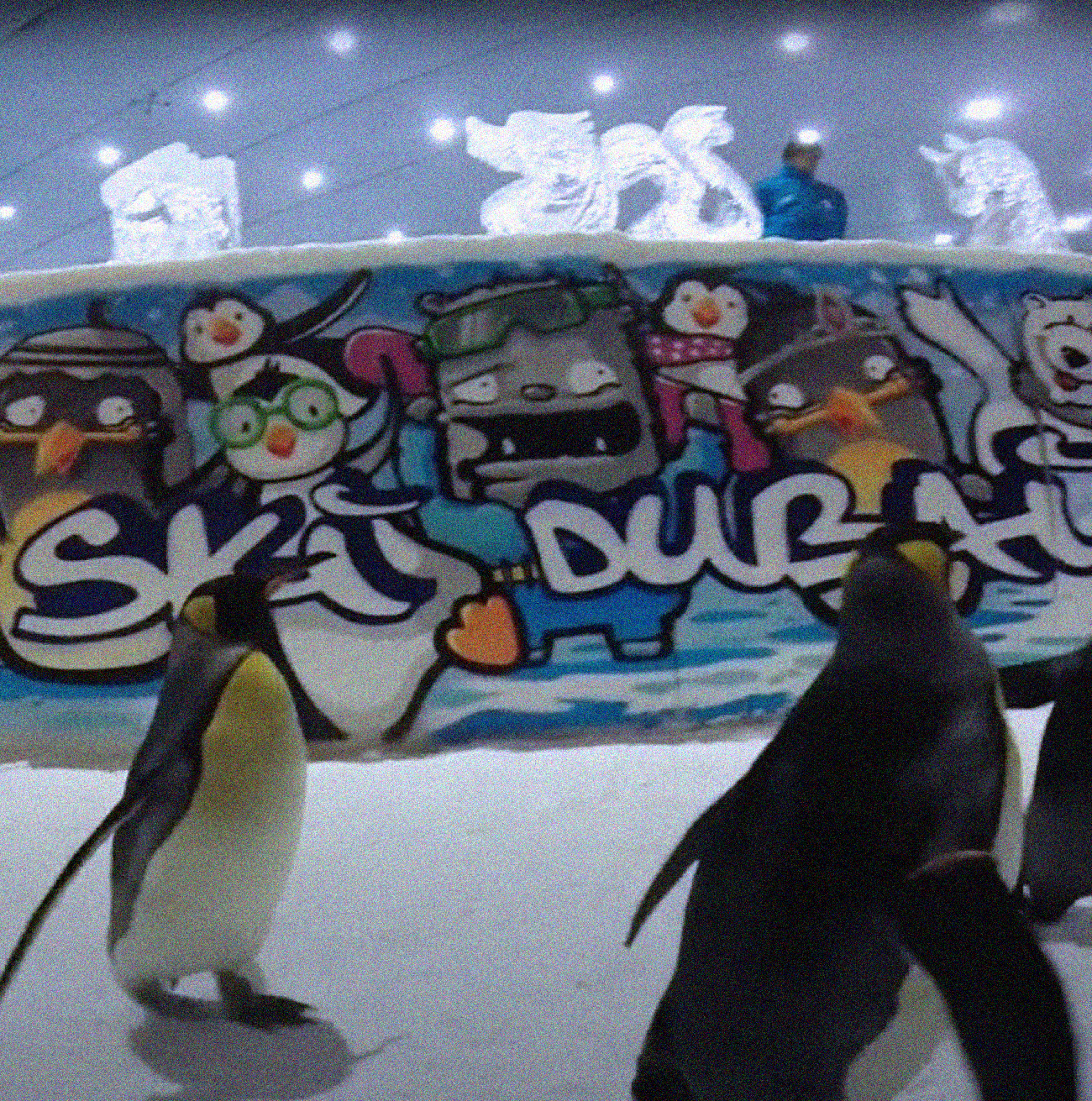 Then he tackled “SAULE, PĒRKONS UN DAUGAVA” mural together with Dainis Rudens and Ēriks Caune. At the time, it was the largest graffiti mural in the Baltics - about 800 square meters of wall in Riga. They painted authentic Latvian folk motifs, burning through more than 1000 spray cans over twenty days. Grandpa said he snuck in a small KIWIE monster at the top of the wall. Invisible from the bottom, but it’s there. After completing the mural, with no explanation, Grandpa flew to Dubai and stayed there for a while. I have no idea what exactly he was doing there, but I found footage of him painting a wall in Ski Dubai and running around with real penguins. When he came back, he organized another exhibition - this time a bit of a performance piece called “Street Noise”. There was a rave with around 1000 people, and at the highlight of the night, Grandpa smuggled in about 100 spray cans, handed them out to random partygoers, and suddenly everyone started tagging the walls. The venue was bombarded with tags and slogans - hence the name “Street Noise”. And that was Grandpa’s final artwork. Here is a video if you fancy see the damage. Maybe you were there?