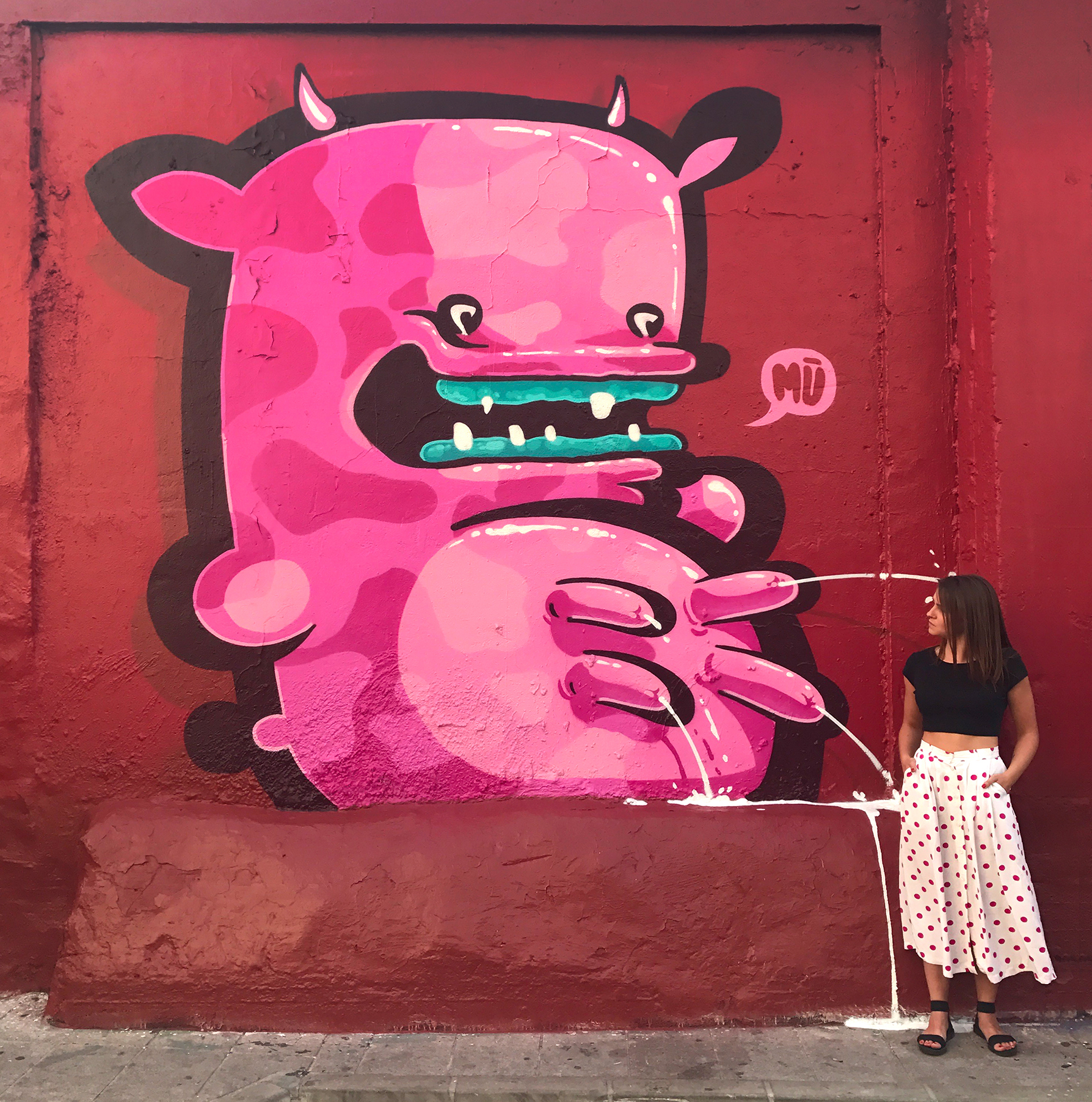 Without delay, Grandpa went straight from Dubai on a spray-cation to Cyprus again for the Street Life Festival 2016. I couldn’t find many pictures from this trip - it could be he’s hiding something in Cyprus and deleted all the evidence. When I asked why there were so few photos, he said his phone was “hackeredred.” I don’t think that’s actually a word. Immediately after, he disappeared to Bali, Indonesia. I guess the Bali vibes inspired him to celebrate ten years of the KIWIE Monster. Wanting to thank all his followers who had been making fan art and growing Grandpa’s FanArt collection, he returned to Riga and put together the exhibition "MIMIK" at Riga Art Space - the same place where BENEATH was held, only this time three times bigger. It broke the opening-night attendance record yet again. Not that I’m an expert, but I think it had something to do with the fact that the opening night just happened to fall on the same day as massive celebrations in the city.
