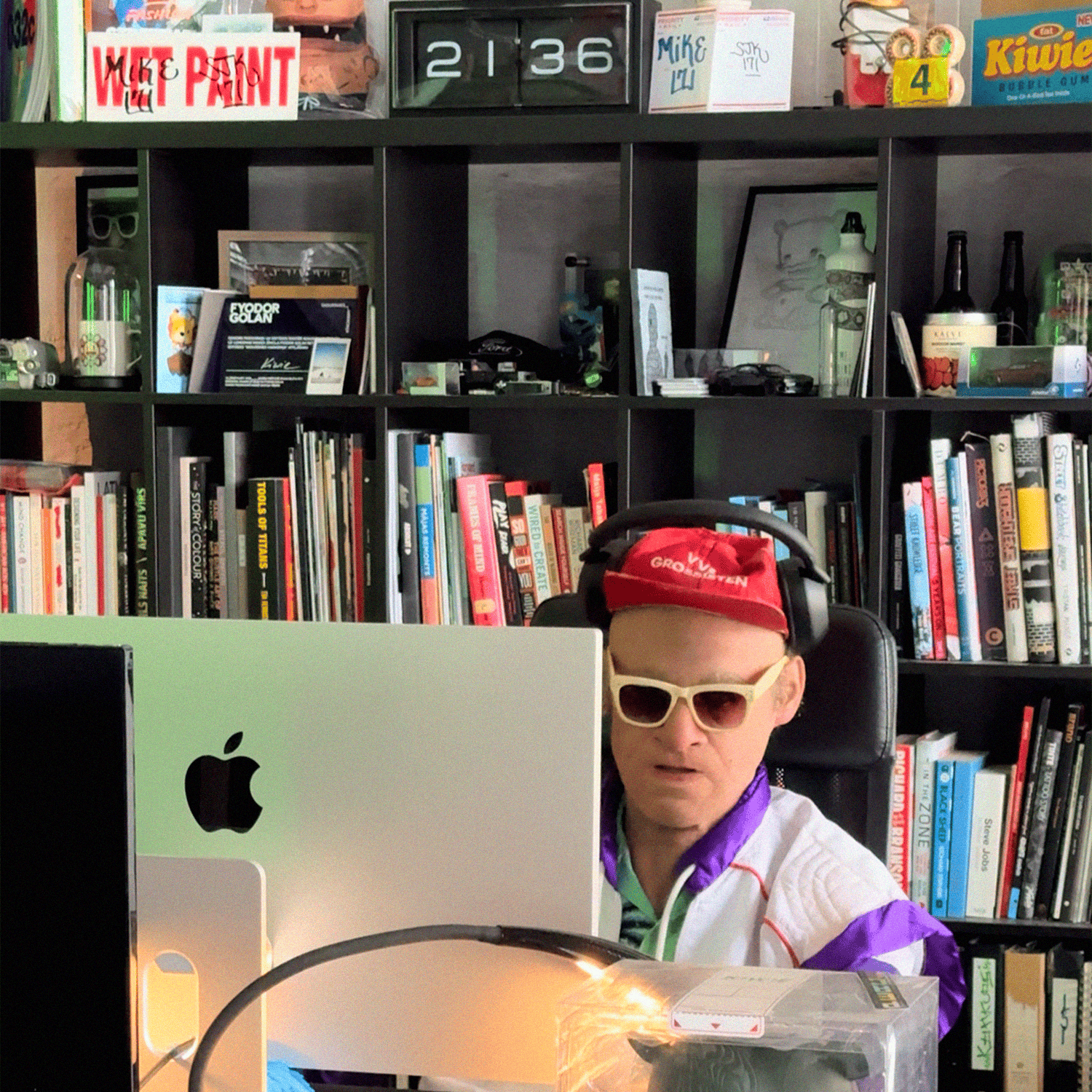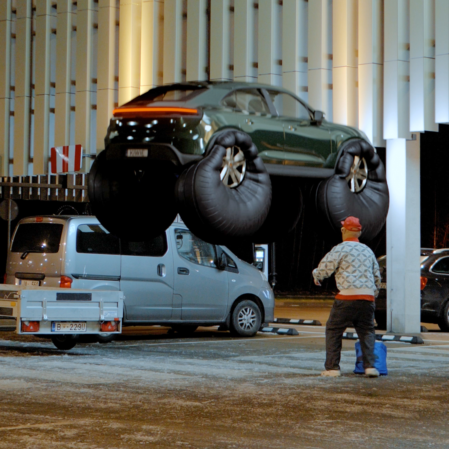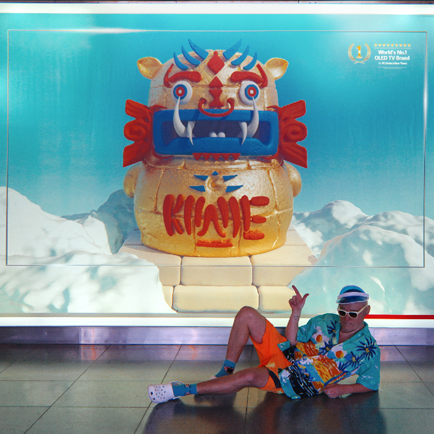 But the whole crypto shenanigan did spark new ideas. Grandpa got invited to Dubai Expo 2020 to represent Latvia, talking about NFTs and the oddball concept of KIWIE 1001. After a trip to New York, he came back so inspired by Takashi Murakami that he founded KIWIE STUDIO in Riga - together with a few kids he met on Discord. A space that was part laboratory, part creative sanctuary. Somehow, he even convinced Citadele Bank to launch KIWIE Visa cards, designed using artificial neural networks and Python code. Whatever that means. To celebrate the launch, John completely repainted KIWIE SPACE in collaboration with LG, which ended up being selected as one of LG’s most creative projects . An official from Korea even came in person to see it. As if that wasn’t enough, Grandpa also designed the digital awards for Latvia’s Grammys, the Zelta Mikrofons. Probably unnecessary, but at least the animations looked somewhat cool.