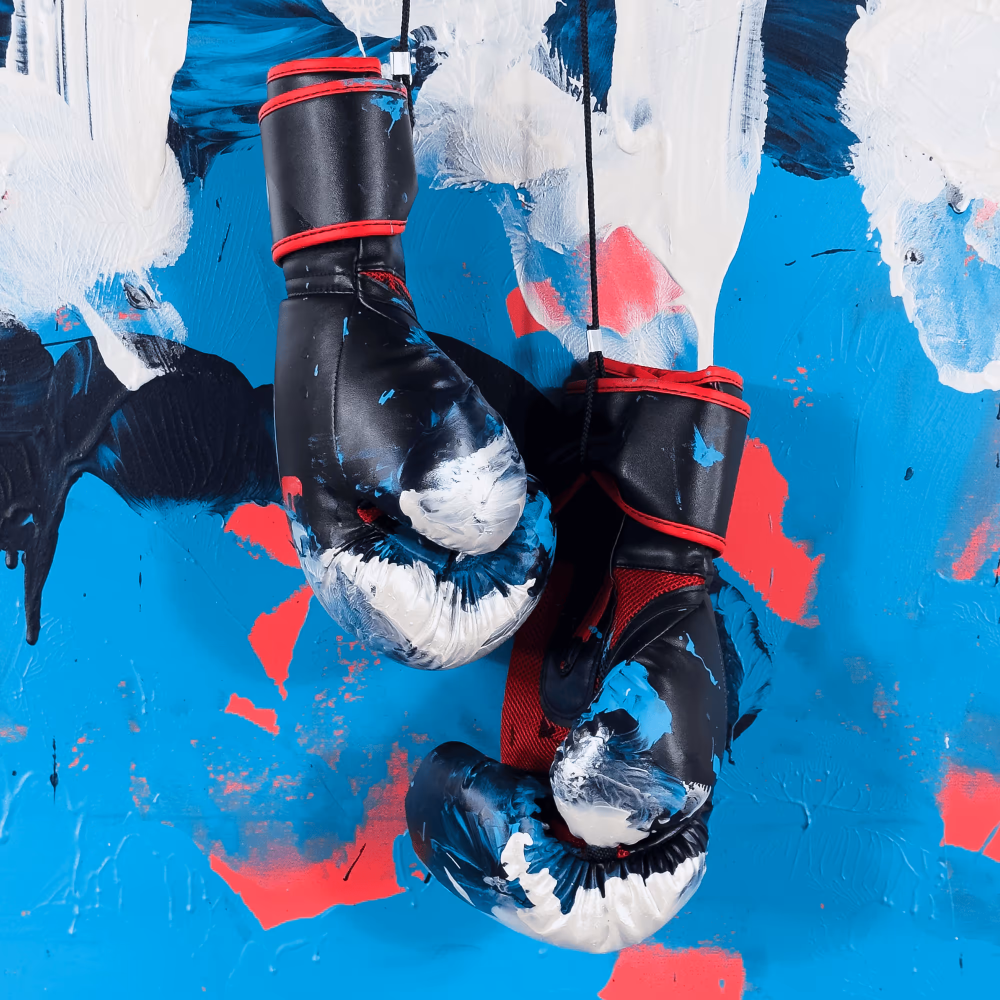 Medium: Mixed media on premium cotton canvas, painted with nitro-acrylic and acrylic paint. Gloves come with the artwork as the central object.