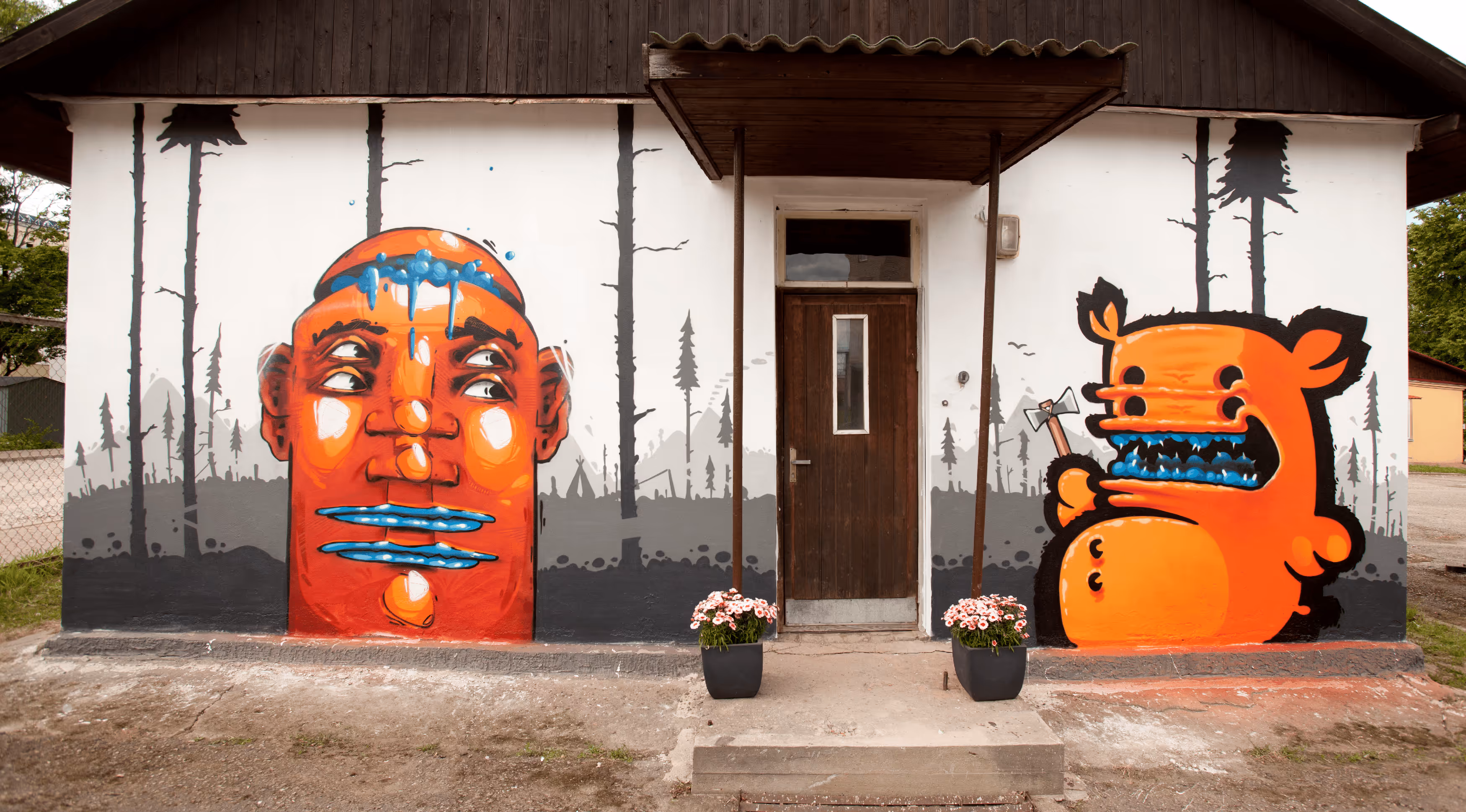 Collaboration at the Latvian border with street artist Thobek. Artwork still exists, go check it out!