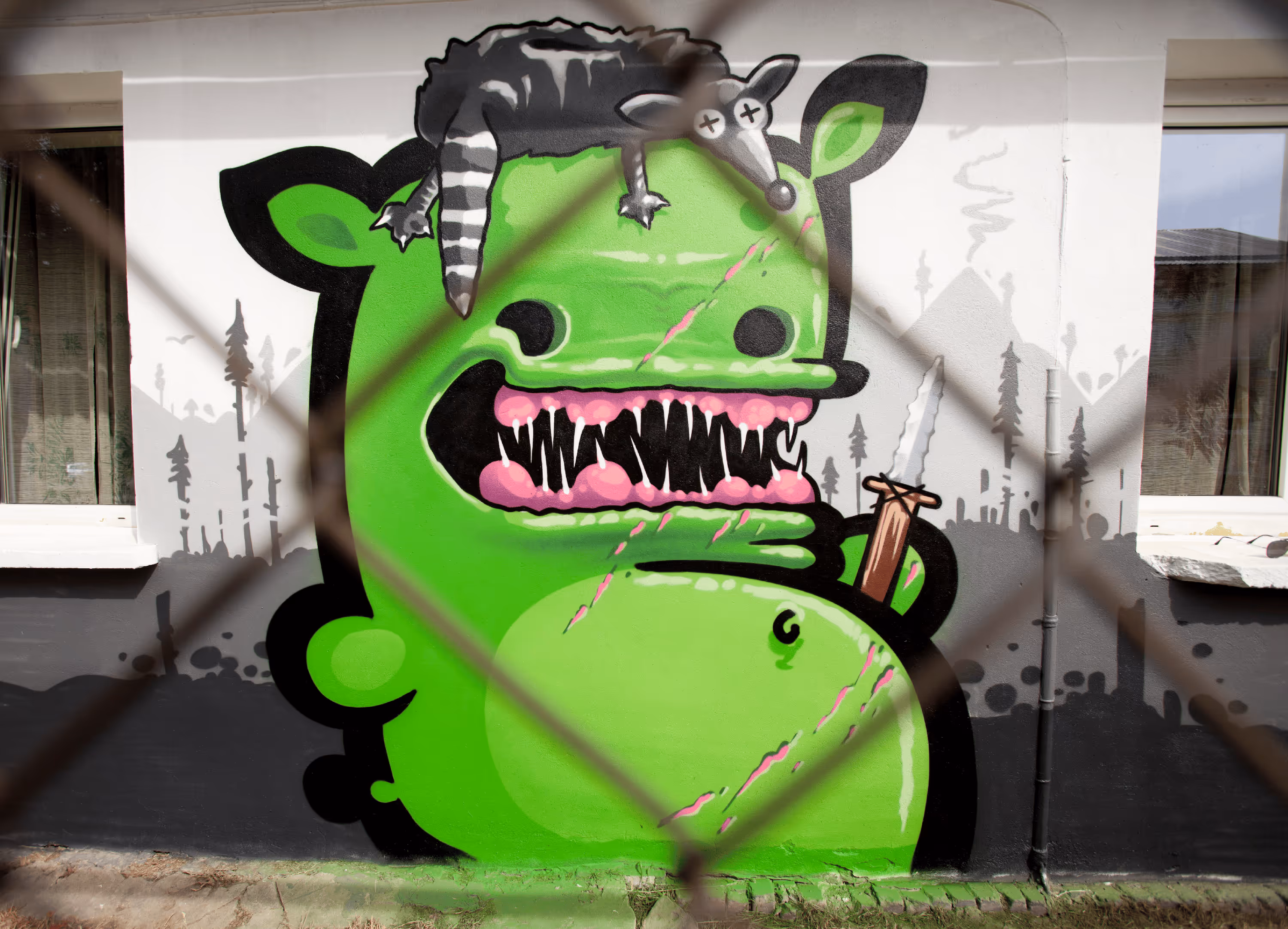 Painted on a War Museum at Estonian-Latvian border. Artwork still exists.