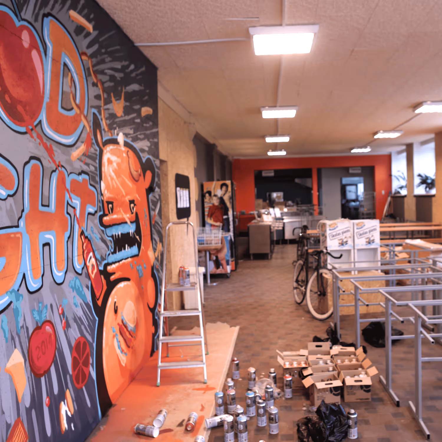 Grandpa said this was painted in schools cafeteria. And he heard it's long gone.